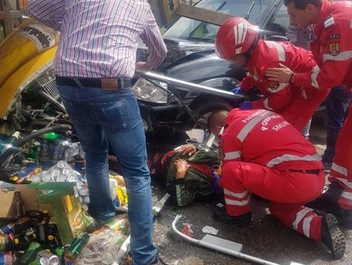 Autoturismul a intrat într-un magazin de la colțul unei străzi din cartierul Vădeni, din Târgu Jiu, distrugând mai multe frigidere pentru băuturi.În urma impactului, bărbatul a rămas prins sub autovehicul. Pompierii militari au intervenit pentru scoaterea acestuia, care se afla în stare de conștiență și pentru acordarea primului ajutor calificat.Bărbatul a fost transportat de urgență la spital, alături de o femeie, care a făcut un atac de panică.