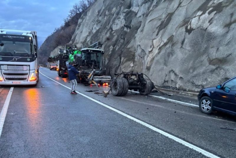 Două TIR-uri s-au ciocnit violent, joi dimineața, pe DN6, în apropierea zonei Porțile de Fier, județul Mehedinți. Unul dintre șoferi a murit. Traficul este blocat pe Defileul Dunării.