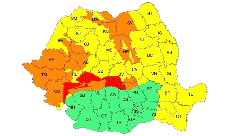 Zone afectate și fenomene vizate: viscol foarte puternic la altitudini de peste 1700 m în județele Caraș-Severin, Hunedoara, Alba, Sibiu, Brașov, Argeș și Dâmbovița