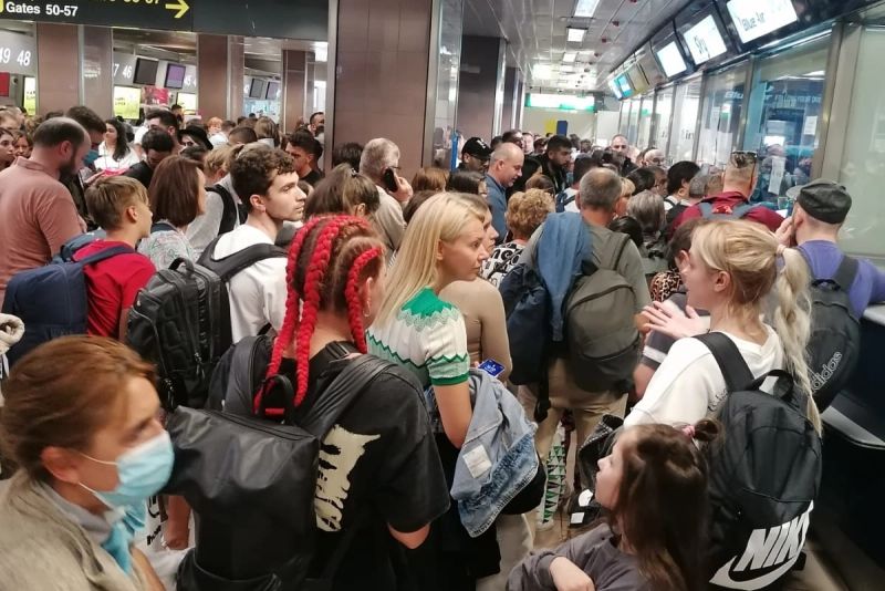 Pe rețelele de socializare au fost publicate mai multe scene cu foarte mulți călători supărați care reproșează reprezentanților companiei și aeroportului că nu au fost anunțați.