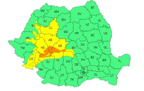 ”În zona montană a judeţelor Hunedoara, Alba şi Sibiu va ninge abundent şi se va depune strat consistent de zăpadă. Cantităţile de precipitaţii vor fi de 50...70 l/mp”, a transmis ANM.