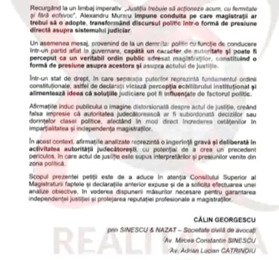 ULTIMA ORĂ: CĂLIN GEORGESCU A DEPUS PETIȚII LA CSM ÎMPOTRIVA LUI NICUȘOR DAN ȘI A LUI ALEXANDRU MURARU. ACUZAȚII GRAVE DE INGERINȚE ÎN JUSTIȚIE - DOCUMENTE