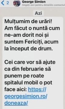 Potrivit site-ului georgesimion.ro, liderul AUR și-a îndrumat nuntașii să ofere sumele de bani ori la petrecere în plic, ori în contul bancar al Fundației Naționale pentru Românii de Pretutindeni. Aici, Simion spunea că banii vor merge la oamenii necăjiți care n-au acces la asistență medicală.