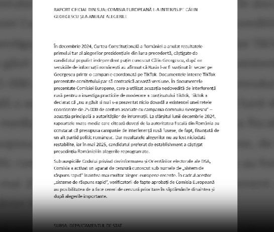 Cu toate acestea, autoritatea electorală românească i-a interzis lui Georgescu să candideze la alegerile repetate din mai 2025. Documentele interne ale TikTok și comunicările cu Comisia Europeană și autoritățile române subminează și mai mult povestea despre interferența Rusiei. Echipele interne de informații ale TikTok au evaluat în mod constant că Rusia nu a desfășurat o operațiune coordonată de influențare pentru a promova campania lui Georgescu și au comunicat în repetate rânduri această evaluare Comisiei Europene și autorităților române.